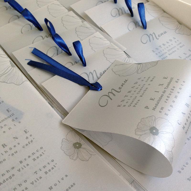 Ementas, marcadores de mesa, de lugar e placards;