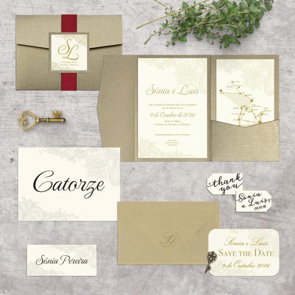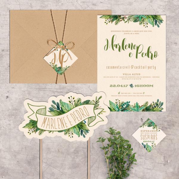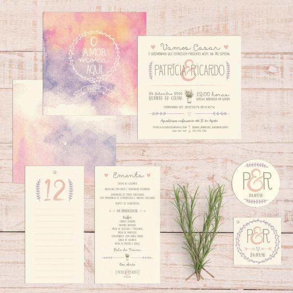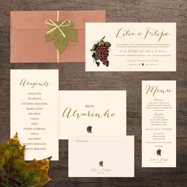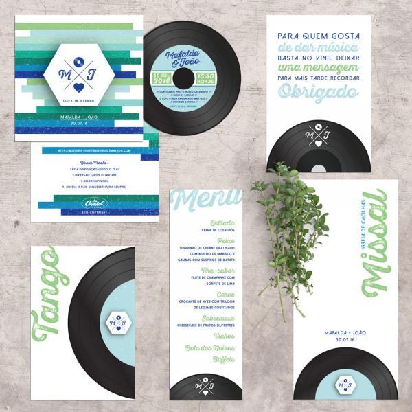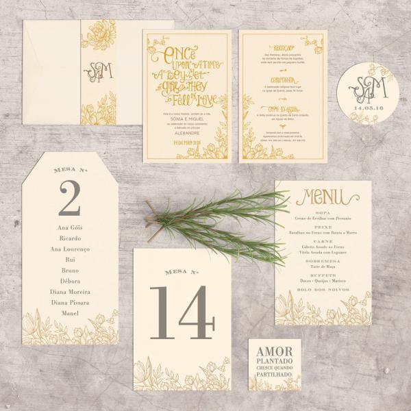 Convites de casamento, save-the-date, participações e cartões de agradecimento;