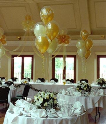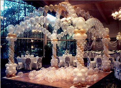 Decoração de festas com balões em espaços domésticos ou para eventos.