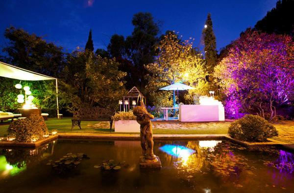 Magnifico exemplo de amplos jardins, a grande maioria das plantas são provenientes do Botanic Gardens na Australia, do Royal Hoticultural Society, da Botanic Society South Africa, de Calcutta, Singapore, New Zealand, South America, Rhodesia e Washington, que lhe conferem uma beleza natural, durante todo o ano. Na quinta, pode usufruir de uma sala com capacidade para 250 pessoas, envolvida pelo Jardim do Lago, ideal para o serviço de aperitivo.